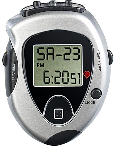 Placez cet appareil multifonction à la ceinture de votre pantalon. Il compte le nombre de foulées, calcule la distance parcourue et les calories brûlées. Vérifiez votre fréquence cardiaque en posant l’index sur le capteur. Toutes les valeurs s’affichent sur l’écran LCD. Vous pourrez enfin voir les effets de vos entraînements et vous motiver à faire toujours mieux ! Podomètre 4 en 1 Horloge, date, heure, alarme, chronomètre Taille de la foulée réglable Écran LCD 5 chiffres Touche de remise à zéro rapide Dimensions : 77 x 55 x 25 mm Poids : 48 g avec piles 2 piles bouton LR44/AG-13 et clip ceinture fournis