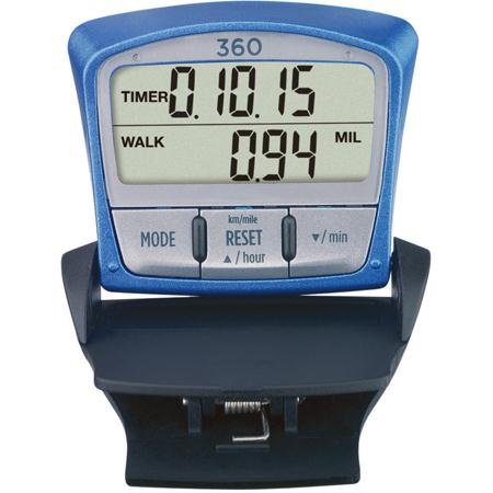 The Fitness Pedometer 360 accurately measures steps, distance, calories burned, exercise time, and speed. Stride length memory for walking and jogging.